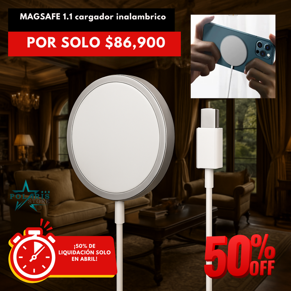 MAGSAFE es la solución ideal con su tecnología magnética avanzada que garantiza una carga rápida y segura en cuestión de minutos, con un diseño exclusivo que complementa tu estilo.